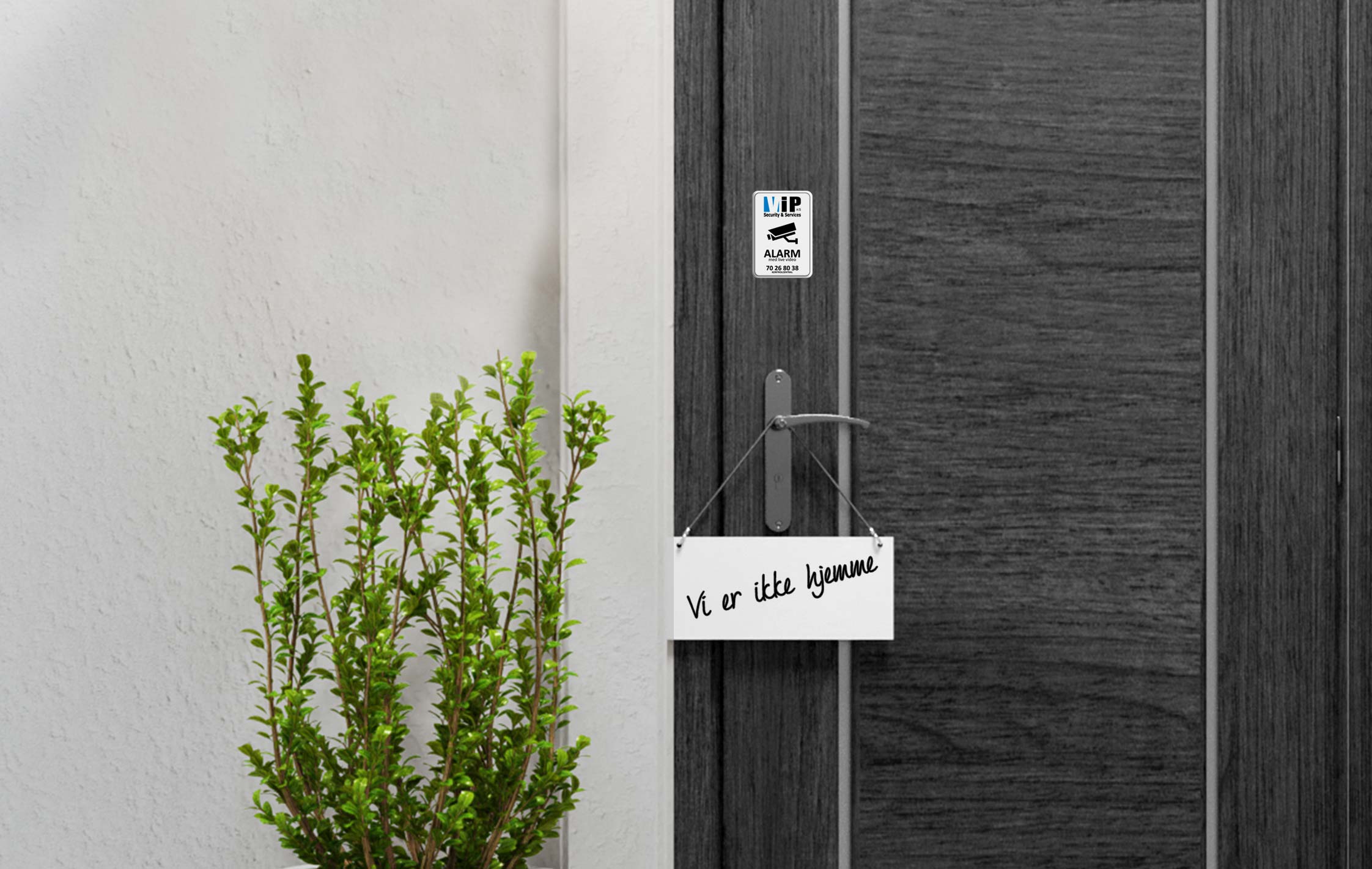 På vores alarm skilte vil der være telefonnummeret til vores politigodkendt kontrolcentral som står til rådighed 24/7-365 dage om året for vores alarm kunder.